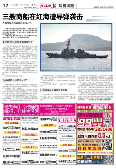 三艘商船在红海遭导弹袭击