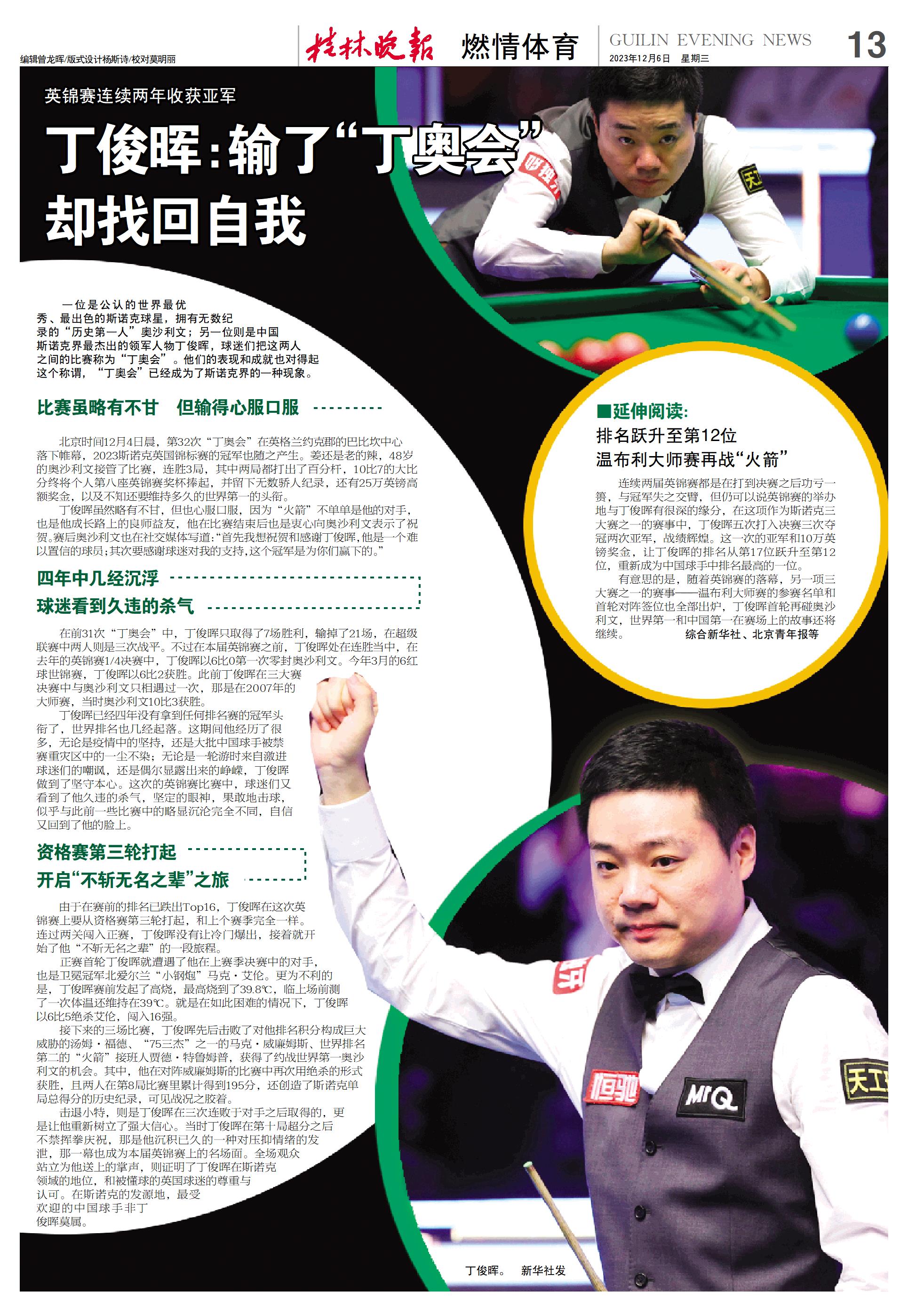 丁俊晖:输了“丁奥会”