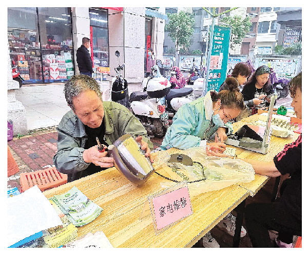学雷锋志愿服务队开展维修家电活动。 (资料图片,阳江社区供图)