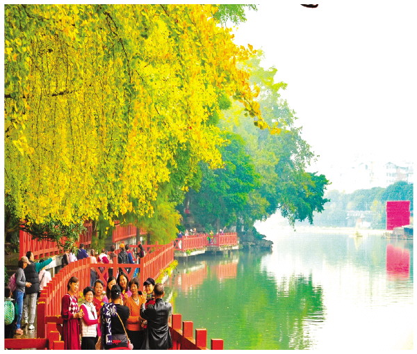 10日恰逢周末,不少市民来到两江四湖边,与家人、朋友在金灿灿的银杏树下拍照,记录美好生活。 记者李凯 摄