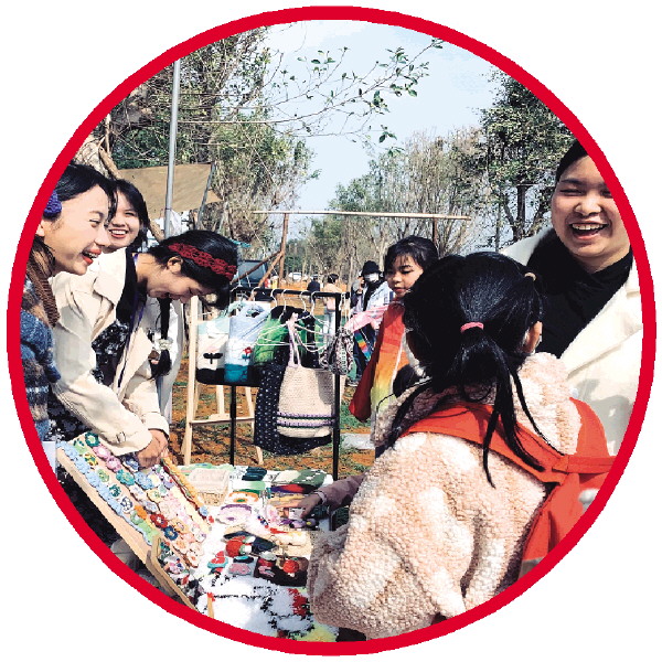 2023年元旦,市民在柘漓集市选购文创产品。(雁山区委宣传部供图)