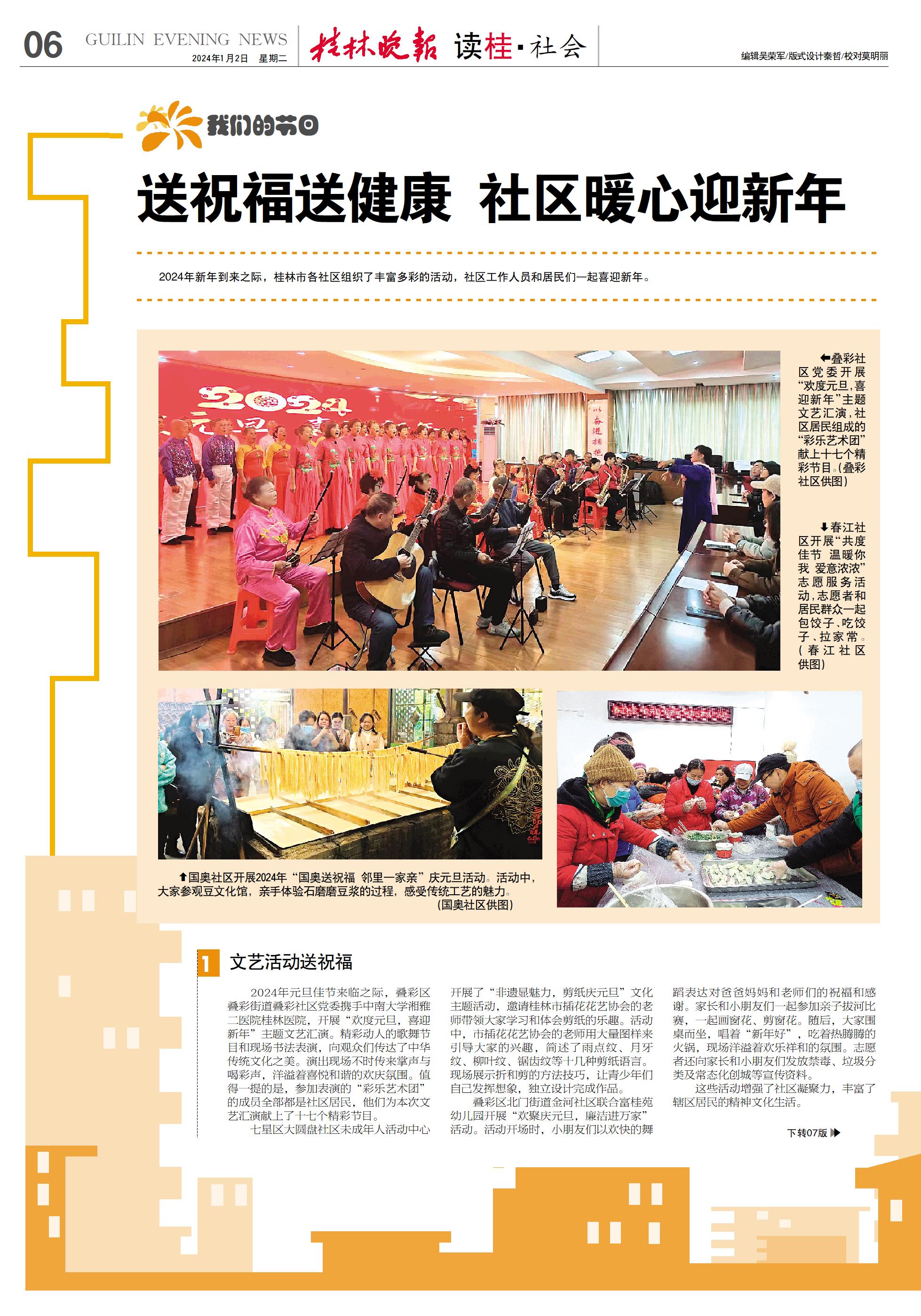 2024年新年到来之际,桂林市各社区组织了丰富多彩的活动,社区工作人员和居民们一起喜迎新年。