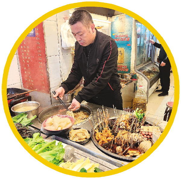 在铁西,一家名为“尖叫麻辣烫”的小店得到了很多食客的喜爱。每到饭点,店里很快就能坐满,因为位置较少,还有部分顾客只能打包带走或是坐在店外享用美食。
