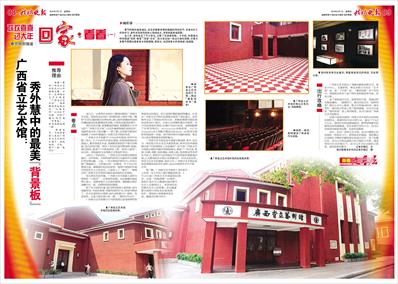 广西省立艺术馆展示厅内陈放着以前戏剧界明星曾使用过的饰品、抗日战争时期的版画等藏品,以及从广西省立艺术馆旧址废墟中保留下来的基石,这些物件见证了该馆80年的历史。承载着重要功能的剧场设有466个座位,台前左右两侧有演出字幕屏,全方位的视觉环境由132盏灯光设计组成,音响则配置了世界顶级的L-Acoustics音响系统、AVID VenueSC48大型数字调音台及Shure AD系列无线和有线话筒十余套,成为更具现代功能的剧场,观众可以更直观地感受戏剧的魅力。