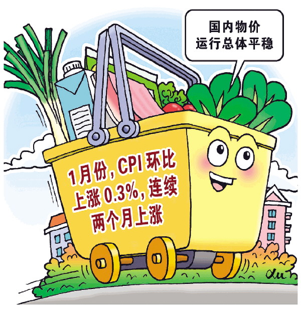 “1月份,扣除食品和能源价格的核心CPI环比上涨0.3%,涨幅与近十年同期平均水平相当;同比上涨0.4%,保持温和上涨。”董莉娟说。
