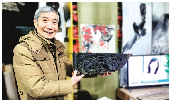马贵希展示寓意“鱼化龙,一路清廉”的老物件。