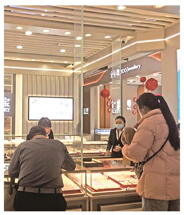 近日,吴女士(右一)来到百爵珠宝店要求退货被拒。