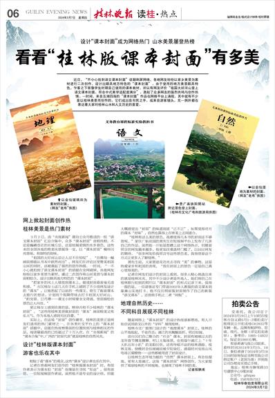 更让杨女士感到欣喜的是,榜单内有不少桂林的“课本封面”。“这些用桂林美景做封面的‘课本’画面精美又恢弘大气,作为本地人感到无比自豪。”