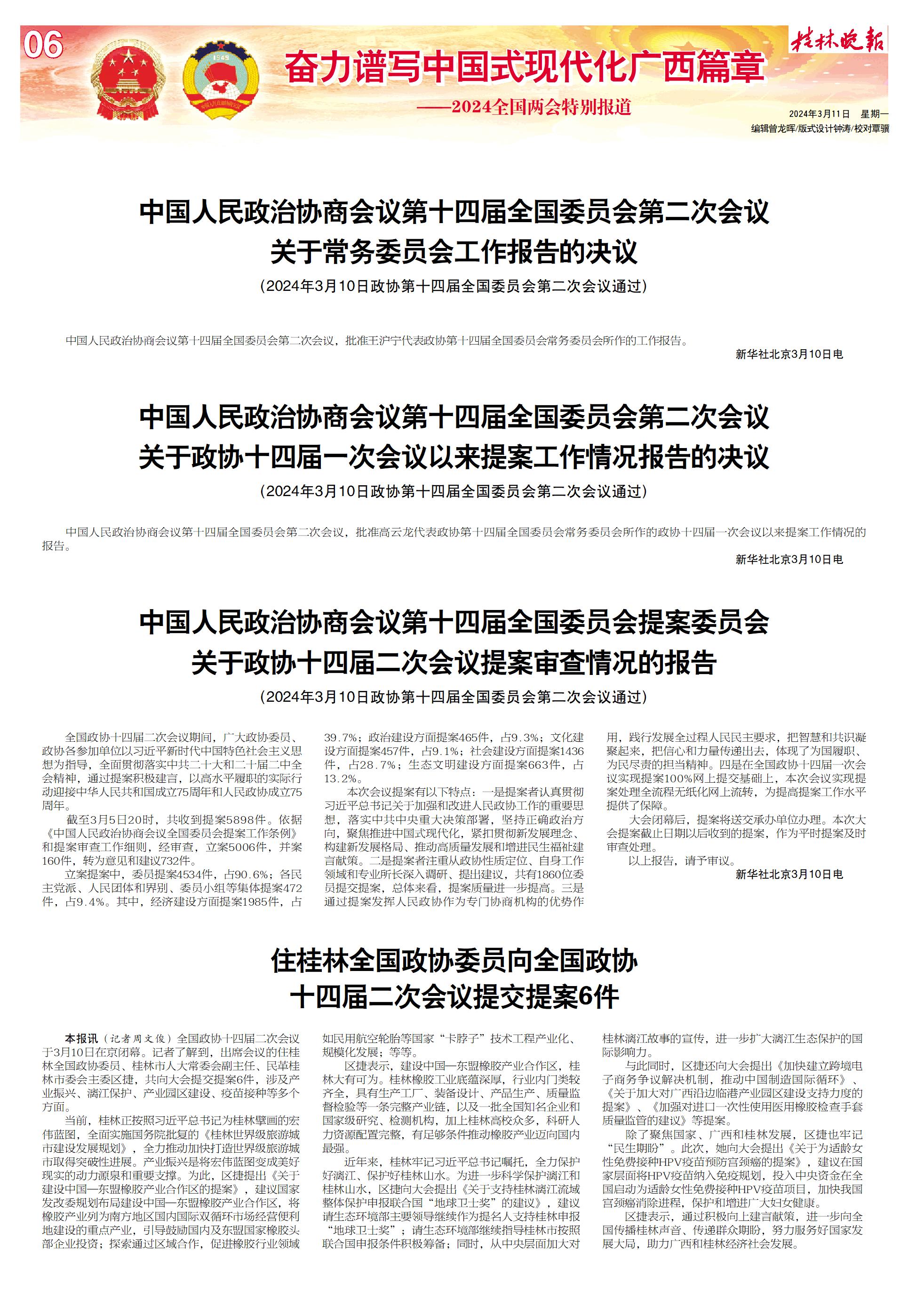 住桂林全国政协委员向全国政协