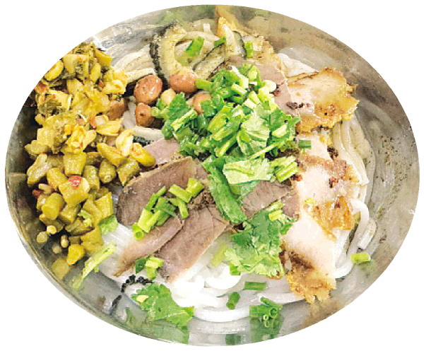 近日,记者来到位于普陀路的荣华米粉店。下午1点多钟,对于一些米粉店来说,这个点嗦粉的食客不多,但荣华米粉店里却坐满了食客,还不时有食客到店点餐:“要二两卤菜”、“煮个二两三鲜”、“搞碗炒粉”……
