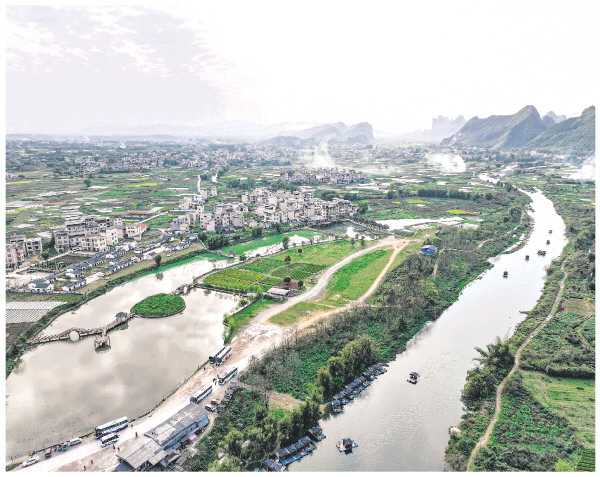 近日,一艘艘竹筏载着游客在荔浦市马岭镇马岭河游览参观。在这里,游客既能领略山水的秀美,又能享受田园间的闲适,好不惬意。 记者滕嘉 摄