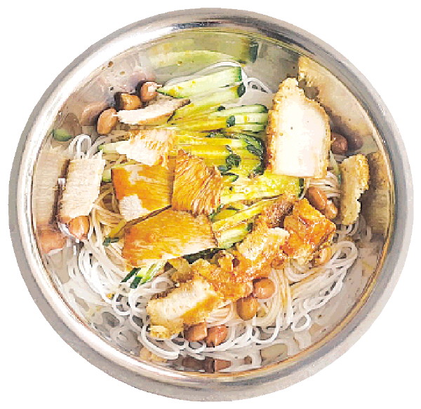 在全州老乡们推荐下,记者也点了一碗凉拌红油米粉。只见老板娘手法娴熟地将出榨米粉冒好后,淋上一勺浓郁的卤水,然后放入锅烧、叉烧、黄瓜、花生、蒜米、辣椒等配料,一碗色香味俱佳的米粉便呈现在眼前。记者按照自己的口味加入红油、香醋、酸菜,轻轻拌匀后,便迫不及待地品尝起来。那凉拌红油米粉的口感脆爽有嚼劲,红油的鲜香与辣味直冲口腔,让人胃口大开,欲罢不能。