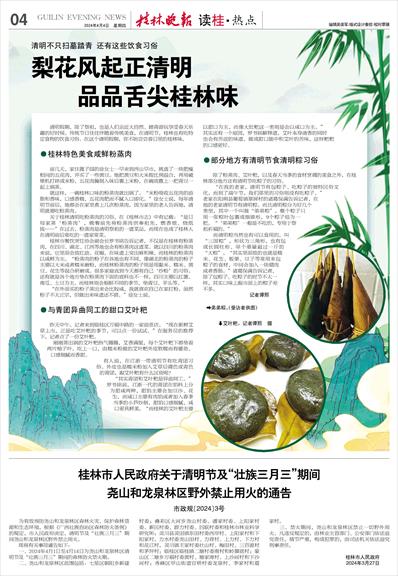 桂林市人民政府关于清明节及“壮族三月三”期间
