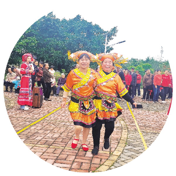 活动现场,社区计生协会“助执手”红娘志愿服务队的志愿者们邀请台下的居民参与抛绣球、唱山歌,为适龄的未婚男女牵线搭桥。