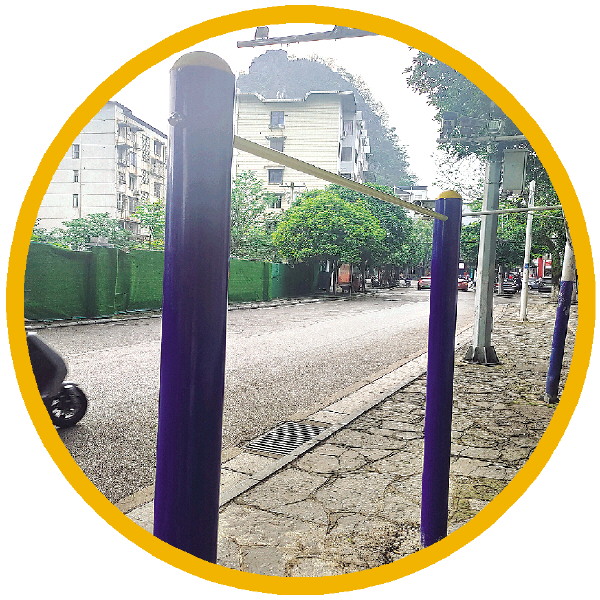 路边的单杠换新。 记者苏文娟 摄