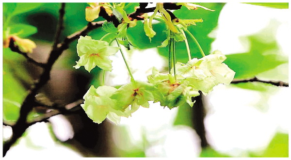 13日,南溪山公园樱花园内的绿樱绽放。据悉,樱花品种众多,其中绿色的品种俗称“绿樱”,其花瓣和花萼均为绿色,为樱中奇品。目前,南溪山公园里正在枝头吐露芬芳的绿樱为“郁金”和“御衣黄”两种。 通讯员李腾钊 摄