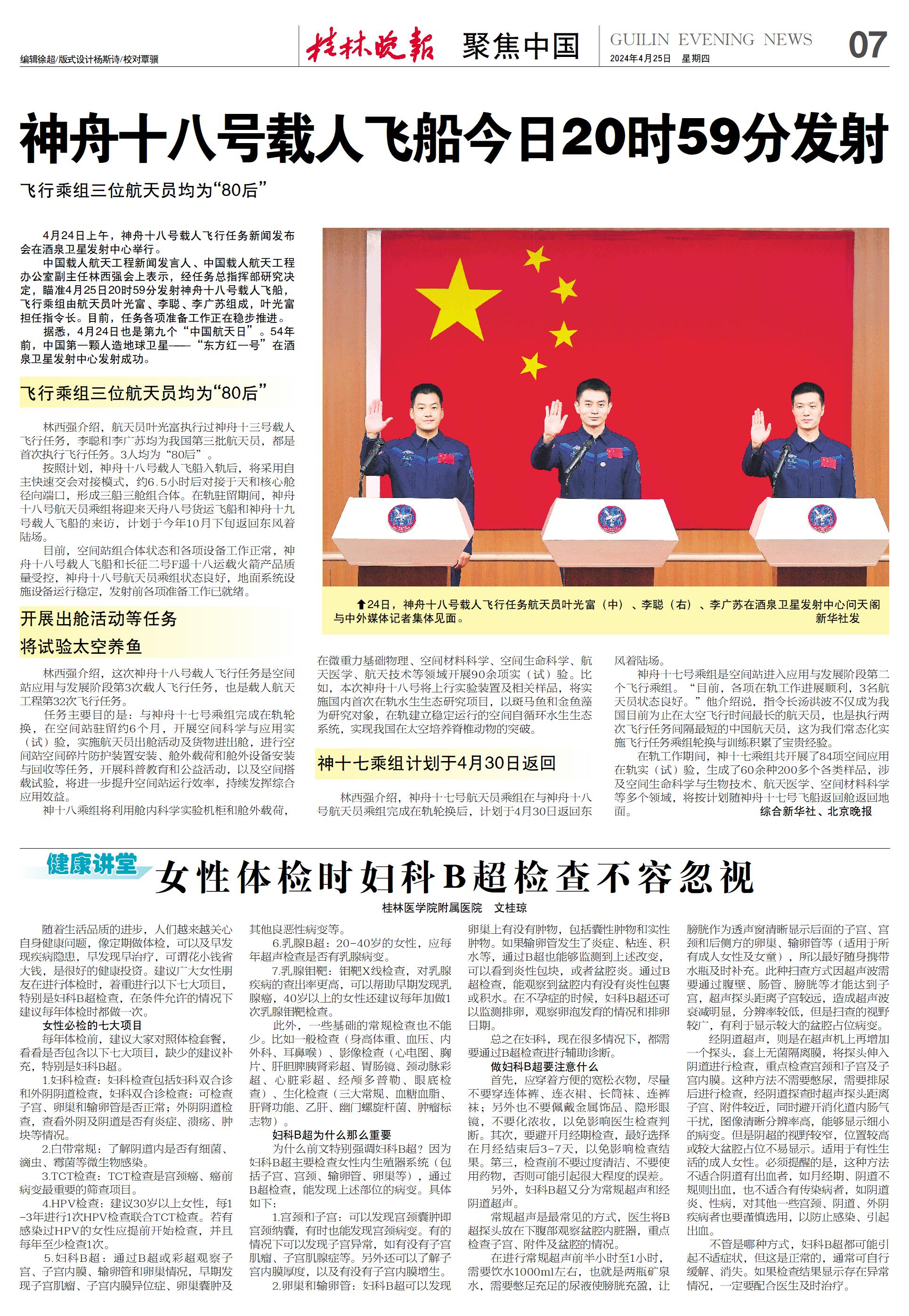 神舟十八号载人飞船今日20时59分发射