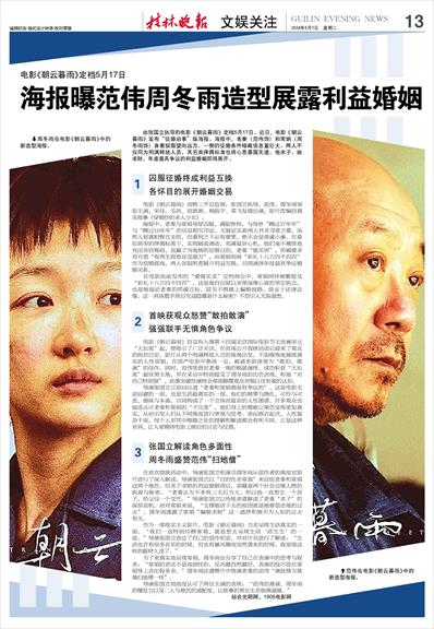 ↓周冬雨在电影《朝云暮雨》中的新造型海报。