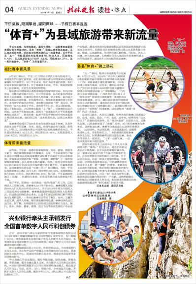 平乐有桨板,阳朔有攀岩,灌阳有网球……这些赛事都是体育爱好者耳熟能详的,这些“体育+”项目以体育激活旅游,又以旅游赋能体育,已经成为桂林旅游的又一流量赛道。其中平乐县“五一”节假日期间共接待游客10.88万人次,同比增长5.42%,实现旅游总收入10281.6万元,同比增长5.21%,这一系列数据中,“体育+”为其增量不少。