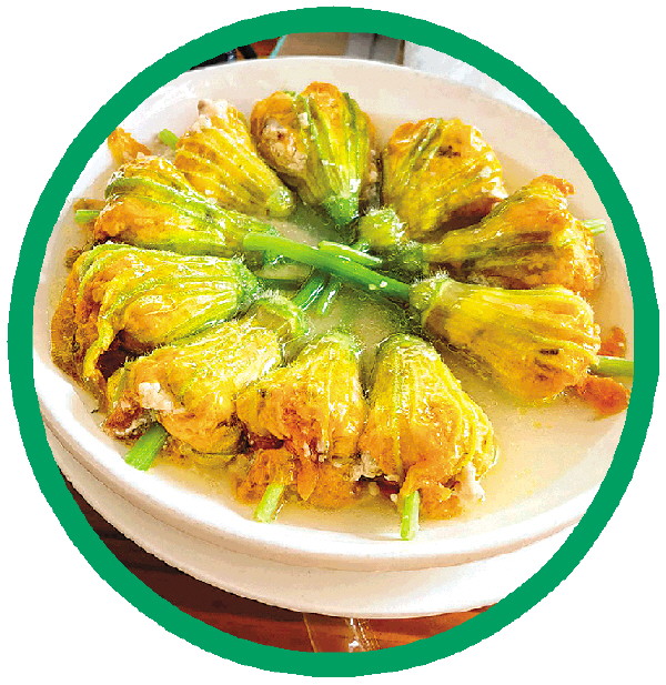 在南瓜花的诸多做法中,平乐十八酿之一的南瓜花酿非常有特点。