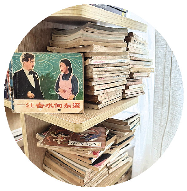 最让记者惊喜的是位于窗边的一个落地书架,上面分层堆放着百余本小人书,有《闹海惩凶》《冰山上的来客》《红楼梦》《茶馆》……这些小人书的纸张已经发黄,且有的地方出现破损的痕迹,但却是不少人童年的回忆,每一本都历经了时间的沉淀。