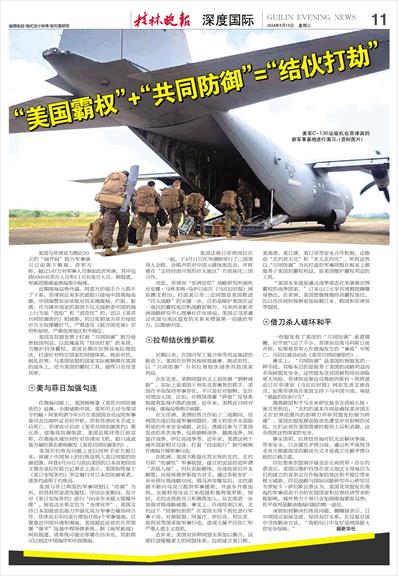 美国及其盟友惯于打着“共同防御”旗号侵害他国利益,以此掩盖其“结伙打劫”的本质。为维护自身霸权,美国长期在世界各地拉帮结伙,打造针对特定国家的同盟体系,挑动对抗、祸乱世界。与美国结盟的国家实际被捆绑在美国的战车上,沦为美国的霸权工具,最终只会反受其害。
