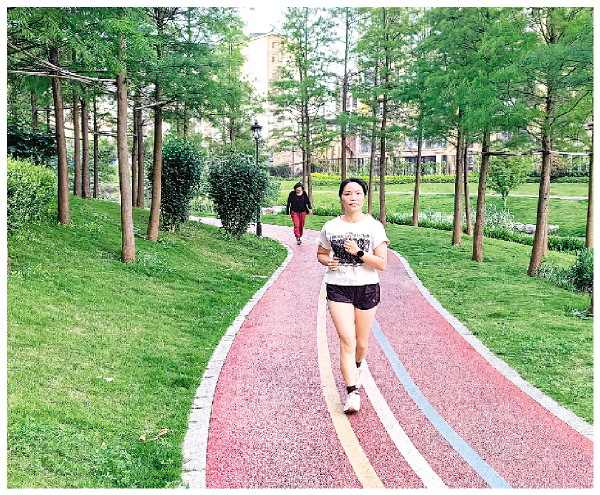 5月14日清晨,市民在七星区建干路一处步道跑步晨练。这几年,桂林打造多处步道,这些步道两旁绿草茵茵、鸟语花香,给市民锻炼提供了好去处。 记者邢刚 摄
