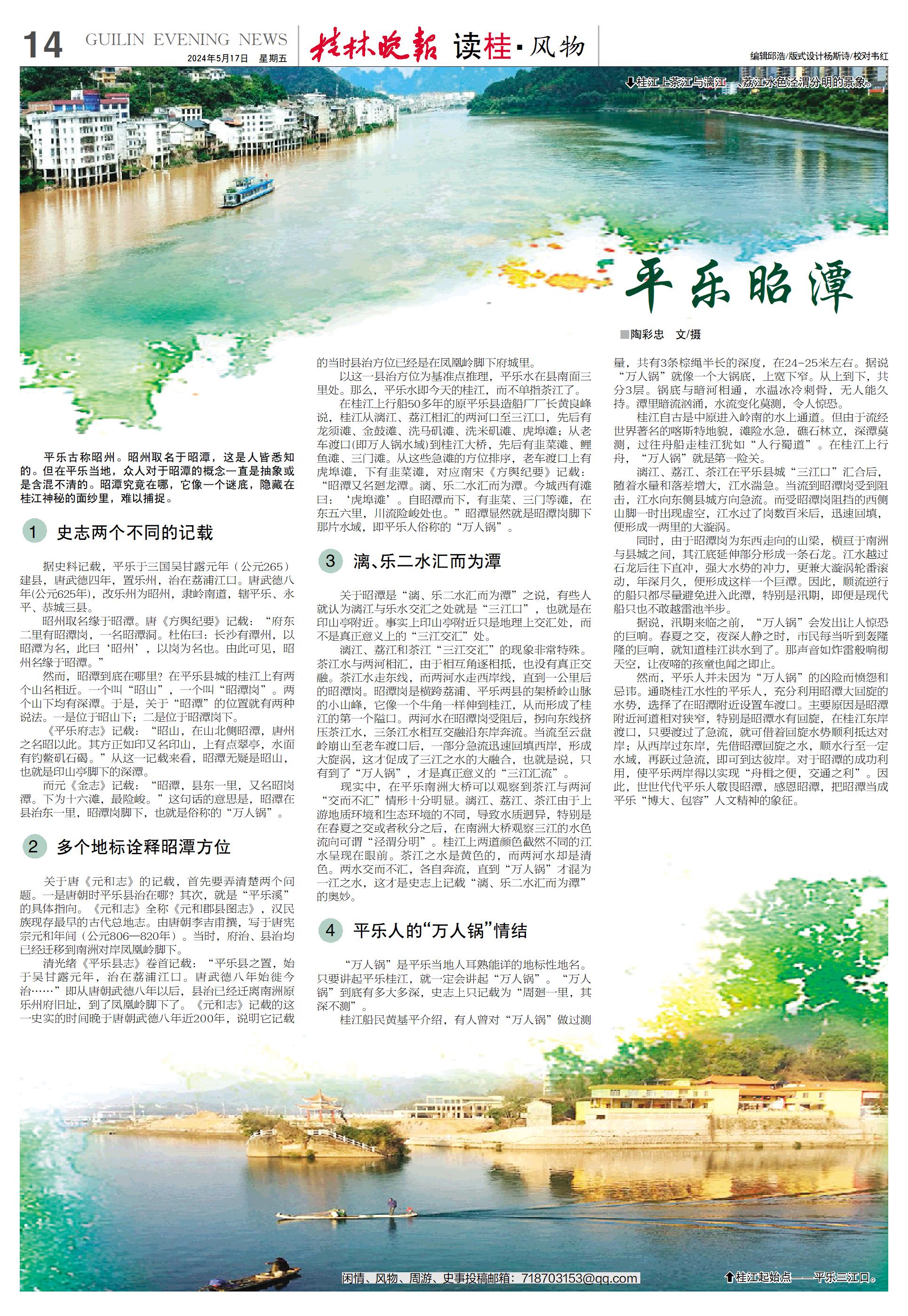 平乐古称昭州。昭州取名于昭潭,这是人皆悉知的。但在平乐当地,众人对于昭潭的概念一直是抽象或是含混不清的。昭潭究竟在哪,它像一个谜底,隐藏在桂江神秘的面纱里,难以捕捉。