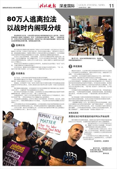 联合国官员18日说,以色列军队进攻加沙地带南部城市拉法十多天来,约80万巴勒斯坦人逃离了这座城市;同日,以色列战时内阁又现“裂痕”:内阁成员本尼·甘茨公开批评总理内塔尼亚胡,并称如不在三周内接受其就最新一轮巴以冲突及后续事项提出的新方案,他将退出战时内阁。