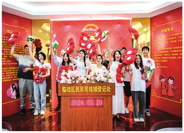 “520”当天,桂林市六城区共有193对新人登记结婚。新人们表示,“520”既是特别的日子,又是普通的一天,今后两人相互信任和帮助,婚姻生活的每一天都会充满幸福感。