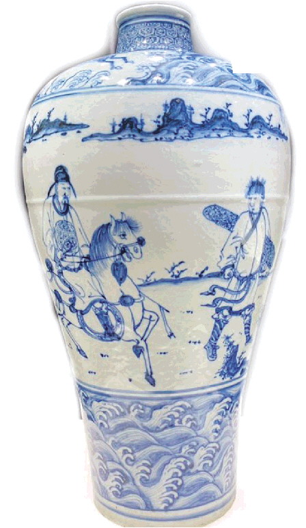 伯牙子期的故事,不仅展现了古人对知音的渴望与珍视,更体现了人与人之间超越身份地位的精神交流。这一文化符号历经千年传承,至今仍散发着独特的魅力。在这对青花文武图梅瓶上,伯牙子期的故事被能工巧匠以陶瓷为载体再次呈现于世人面前,展现了明代青花瓷技艺的精湛与独特。