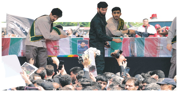 22日,在伊朗德黑兰,人们参加为总统莱希及其随行人员举行的悼念活动。 新华社发