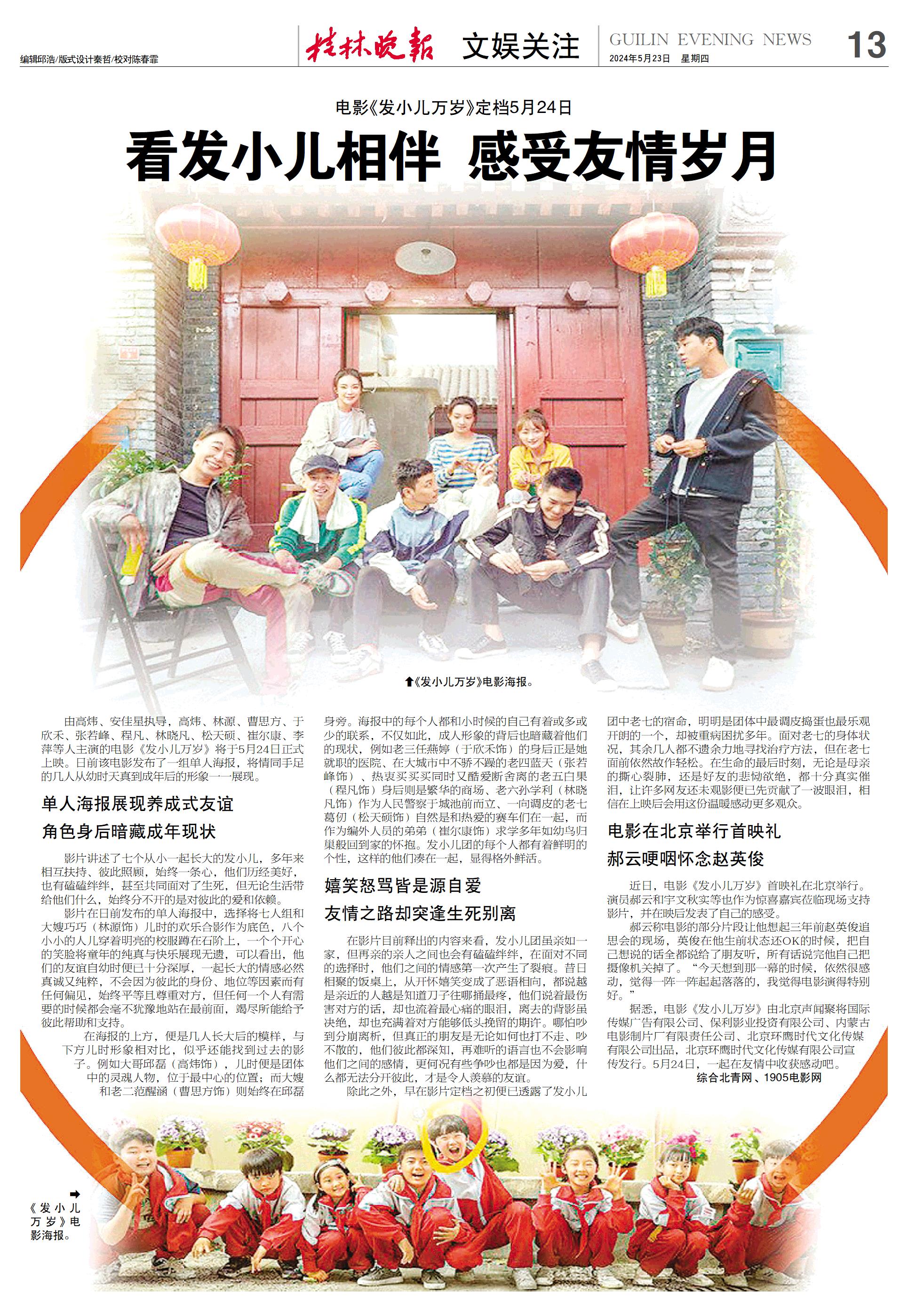 据悉,电影《发小儿万岁》由北京声闻聚将国际传媒广告有限公司、保利影业投资有限公司、内蒙古电影制片厂有限责任公司、北京环鹰时代文化传媒有限公司出品,北京环鹰时代文化传媒有限公司宣传发行。5月24日,一起在友情中收获感动吧。
