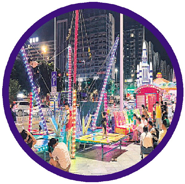 一些家长陪着孩子在游乐设施玩耍。 记者周子琪 摄
