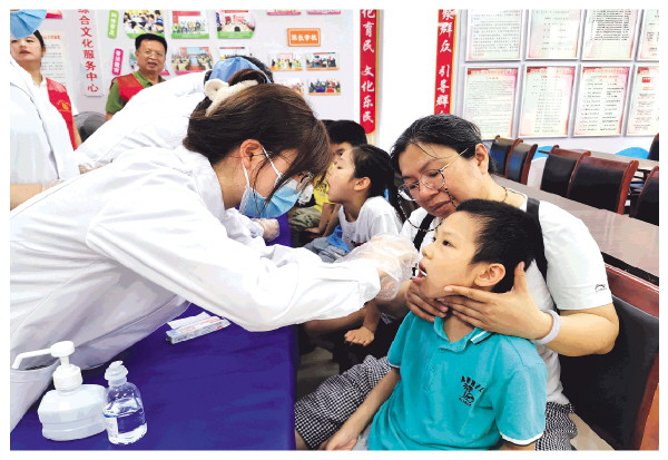 口腔医生给孩子们进行免费口腔检查。 记者韦彦青 摄