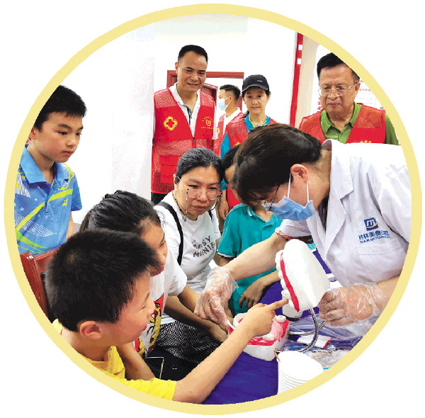口腔医生对孩子们进行口腔保健宣传。记者韦彦青 摄