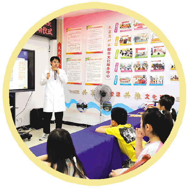 口腔医生给孩子们介绍口腔结构。记者韦彦青 摄