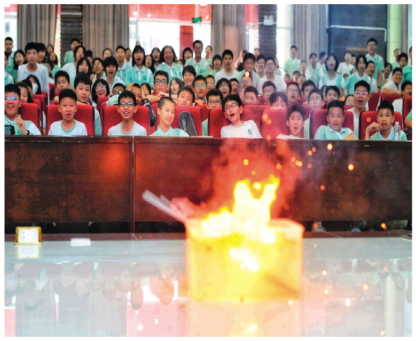 5月27日起,七星区科协联合七星区委宣传部等部门邀请中国电子学会科技志愿者走进六所中小学,开展2024年全国科技周——科普进校园活动。通过各种有趣的科学实验,激发广大青少年学科学、爱科学的热情。图为5月28日,国龙外国语学校的学生在进行水底烟花的科学实验。记者滕嘉 摄