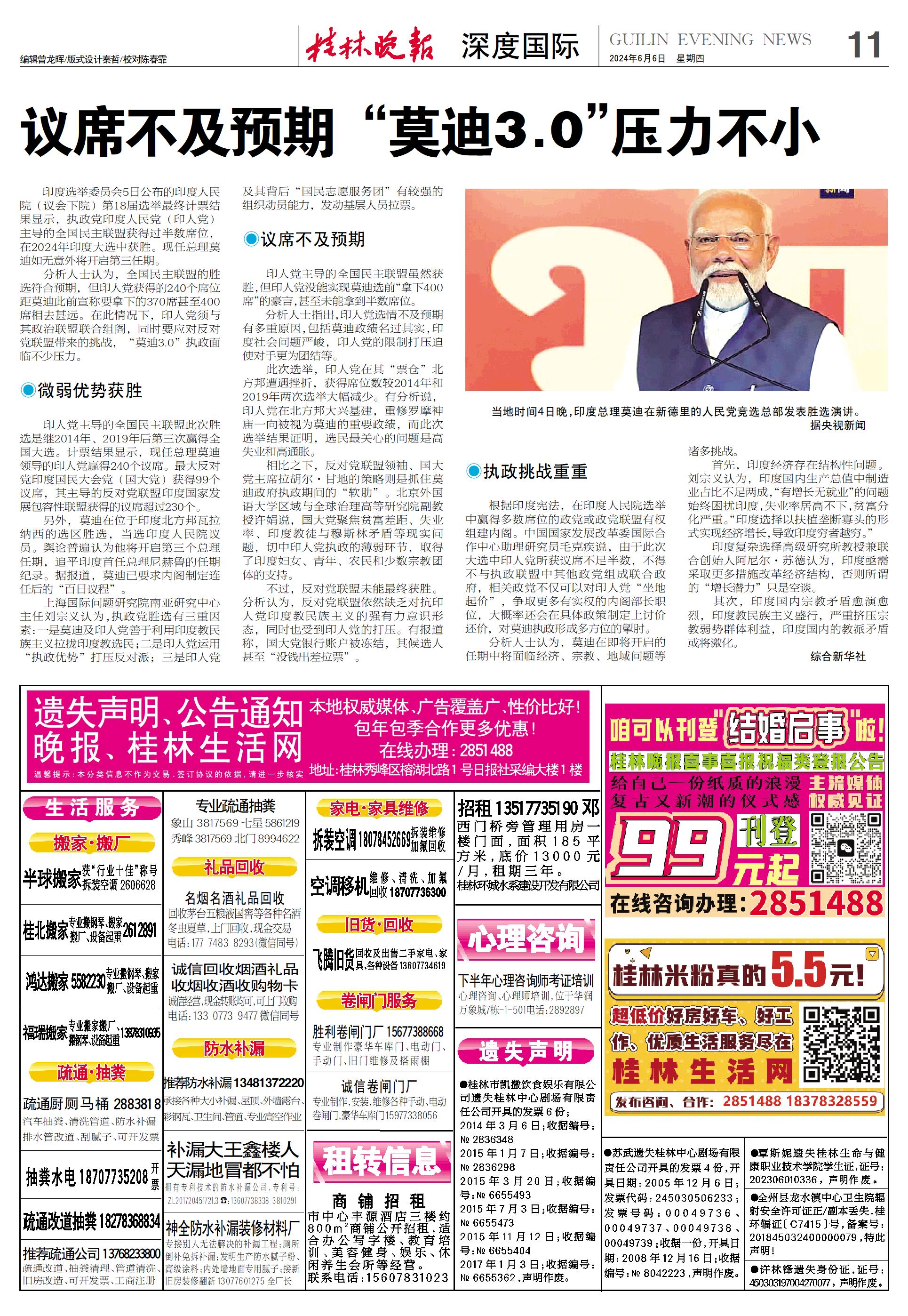 议席不及预期 “莫迪3.0”压力不小