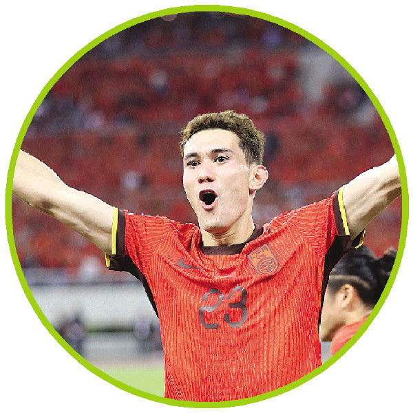 6月6日,首次代表国家队出场的中国队球员拜合拉木·阿卜杜外力在进球后庆祝。新华社发
