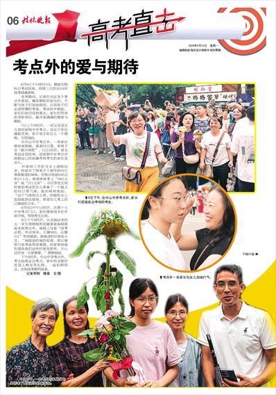 9日下午5时许,从北海回来的大一学生黄晓栩和闺蜜拿着海报提前来到考点外,海报上写着“高考必胜、毕业快乐、左脚985、右脚211”等祝福语,准备送给好朋友小文。“海报是给她的惊喜,想让她明白高考虽然很重要,但更希望她知道有我们这些好朋友陪伴,开心过好每一天更重要。”黄晓栩说。