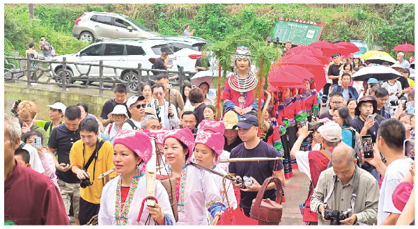 近日,龙胜各族自治县龙脊镇平安村举行了一年一度的梳秧节。村民们在梯田间开展偶耕、梳秧、插田、走秀及拔河等系列活动,吸引众多游客前来旅游体验。记者阳聃甫 摄