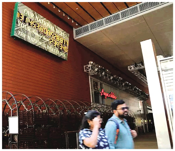 位于美国纽约曼哈顿的“国债钟”。(资料图片)