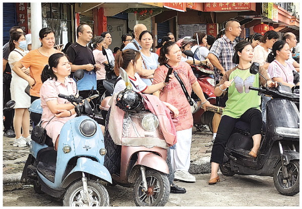 6月24日,我市为期四天的2024年中考拉开序幕。在逸仙中学高中部考点外,家长们紧张而期待地等着孩子结束当天的考试后出来。 记者邢刚 摄