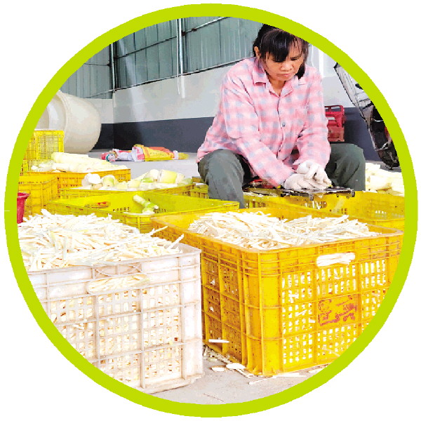 随后,记者来到永福县仁庆种植专业合作社看到,工人熟练地将去了皮的竹笋切成丝、合作社负责人毛仁庆告诉记者:“最多的时候,我们这里一天可以处理两三万斤麻竹笋。收到的竹笋经过削皮、去尾、切丝后,放入缸中加井水,发酵3到5天就能制成酸笋。我们一般都会打包卖给桂林市区的经销商。我们生产出来的酸笋不愁销路,有时候甚至供不应求。”