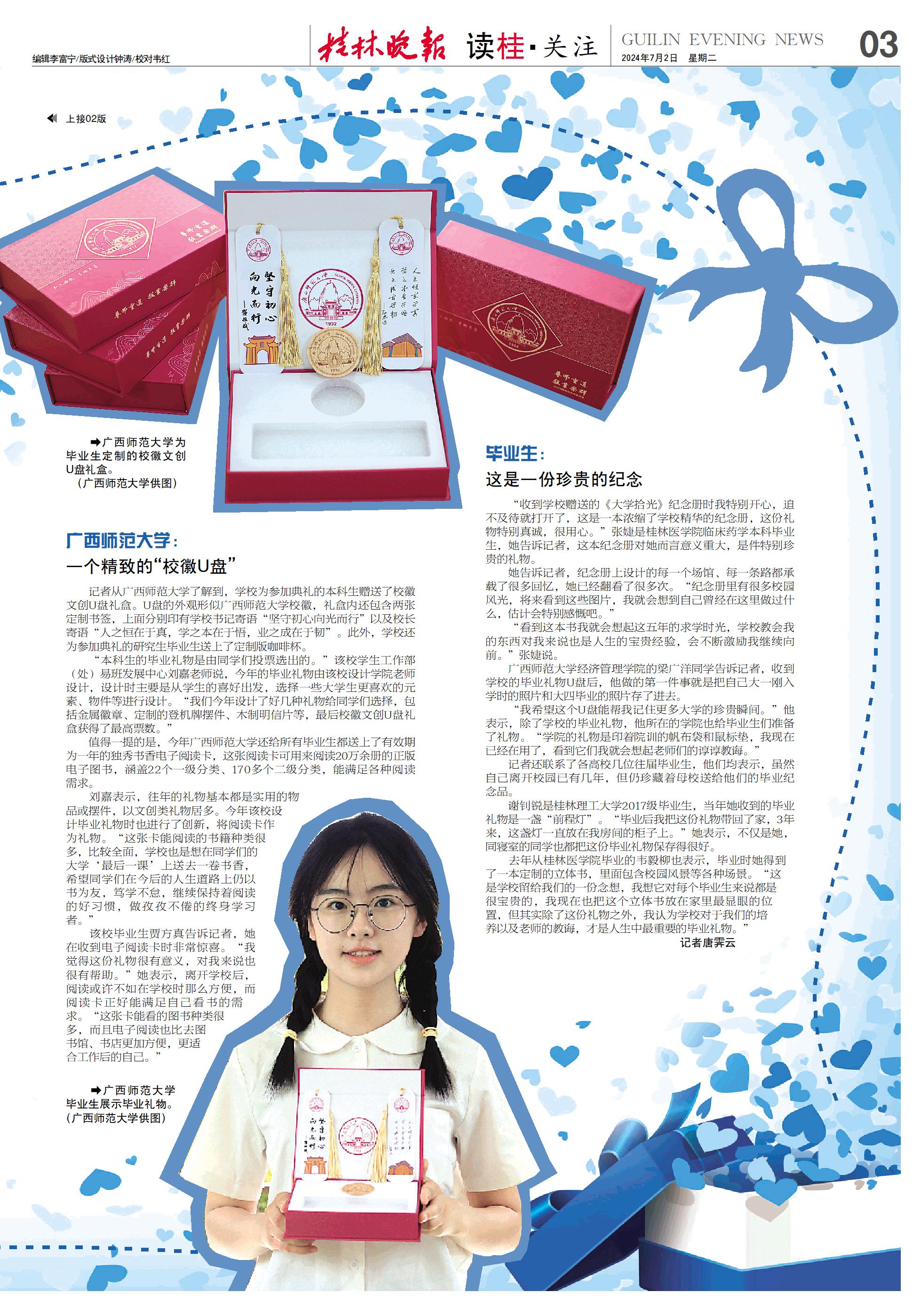 纪念册、学位服、U盘、阅读卡……桂林多所高校为毕业生赠送纪念品