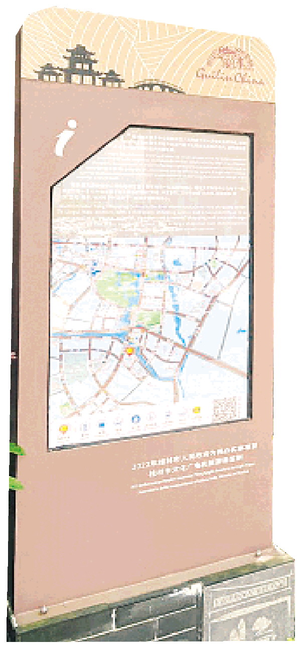 市文化广电和旅游局相关负责人介绍,我市旅游中英文标识系统拥有区位标识牌、导览图、导视图、导视立柱4种展示形式,全方位多层次地对全市的各类旅游资源进行高效导视。区位标识牌在车辆行人即将到达旅游目的地的道路明确导示进入方向;导览图展示游客所在区域美食、住宿、游览、休闲、娱乐及公厕、银行、加油站、医院等公共服务点的分布,方便游客规划行程;导视立柱搭配导视图非常清晰地指明步行15分钟内可到达的餐饮、住宿、游玩地等方向和距离,给游客带来极大的方便。