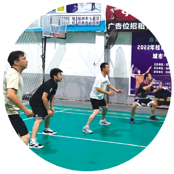 上周五晚,位于水塔路的北斗运动馆内热闹非凡。在场馆的最深处,4个场地同时在进行气排球比赛,他们都来自同一个QQ群——桂林气排球初级群。