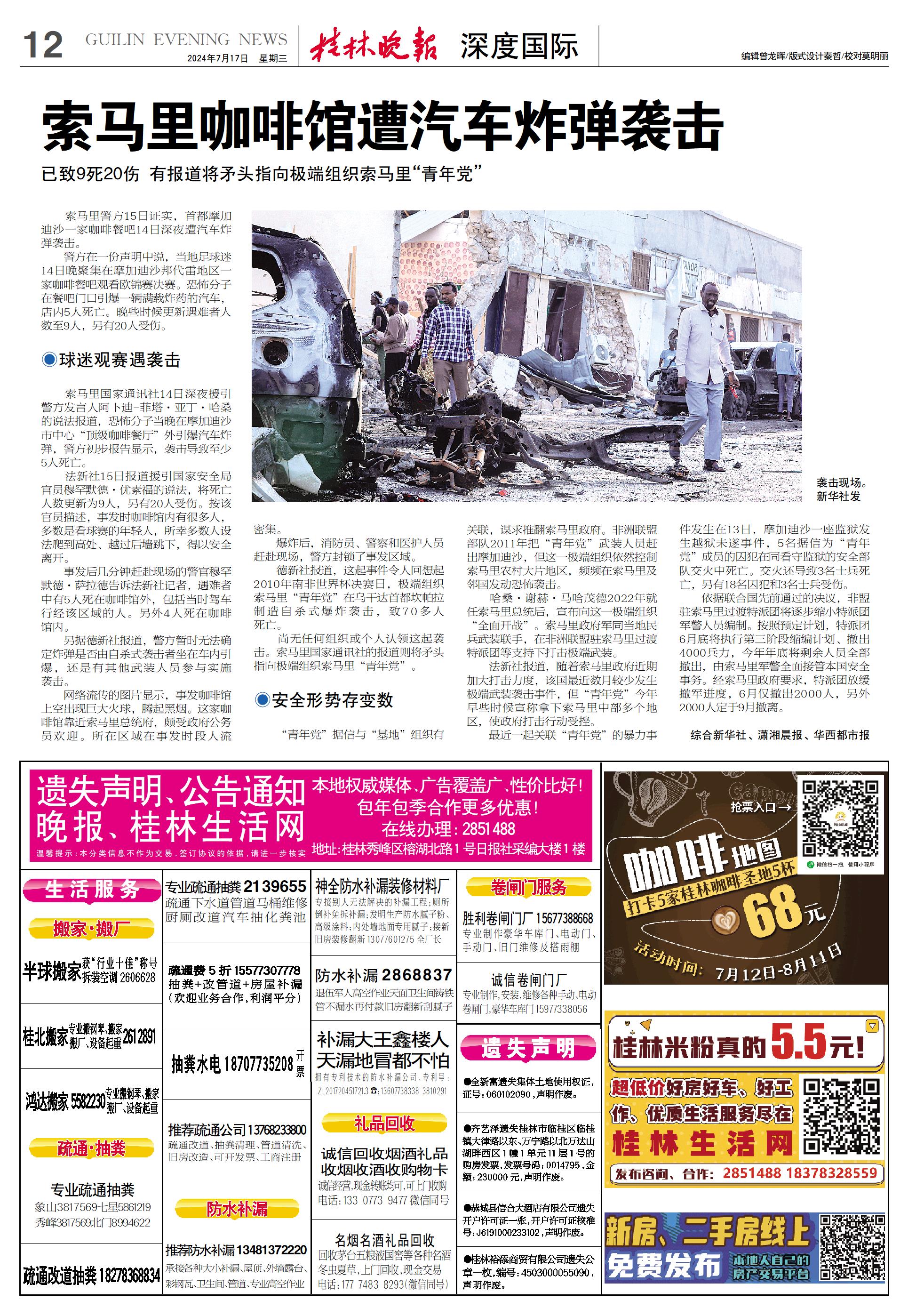 索马里咖啡馆遭汽车炸弹袭击