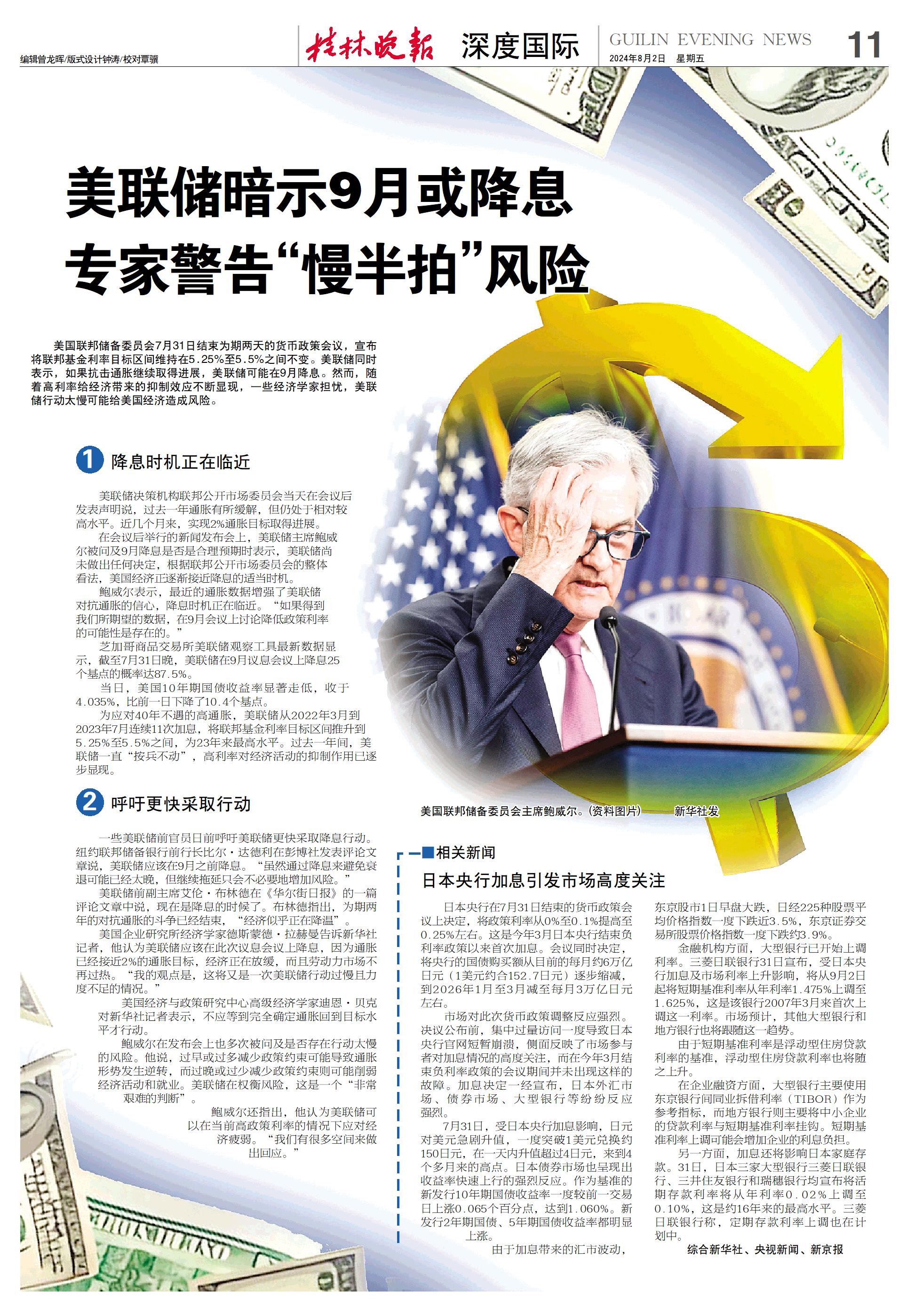 美联储暗示9月或降息